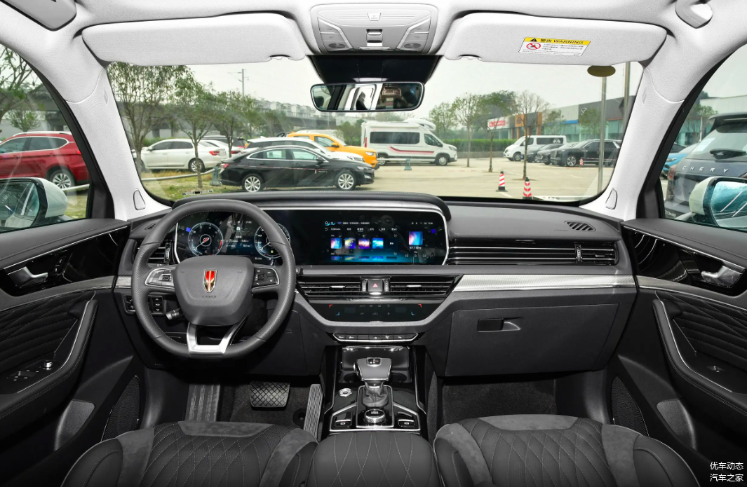 内饰部分,红旗HS5的布局可以说比较有层次感,面板用料比较厚道,多以软性材质包裹,摸上去很有质感,联体大屏则内饰设计的一大亮点,营造出了非常强的科技感,同时集成了一系列功能性配置和系统,辅助驾驶级别达到了L2级,与此同时,像贯穿式空调出风口、平底式方向盘、电子挡杆等都比较新颖,带来实用性的同时,也呈现出了几分高级感。
