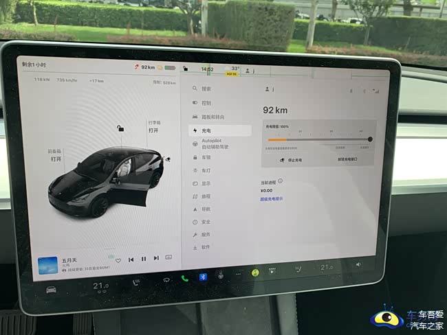 在车辆行驶仅剩92km的时候,用特斯拉超充仅需1小时就能把车辆充到百分百的状态。可以说特斯拉的超充还是非常有效率的,充满百分百的电量为545km。