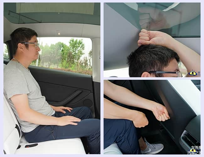 体验者身高178cm,将座椅调至合适位置后,头部还有1拳空间的距离。同一体验者来到后排,保持前排座椅不变,此时后排的头部有1拳的空间,腿部为1拳空间,完全可以满足日常的乘坐需求。