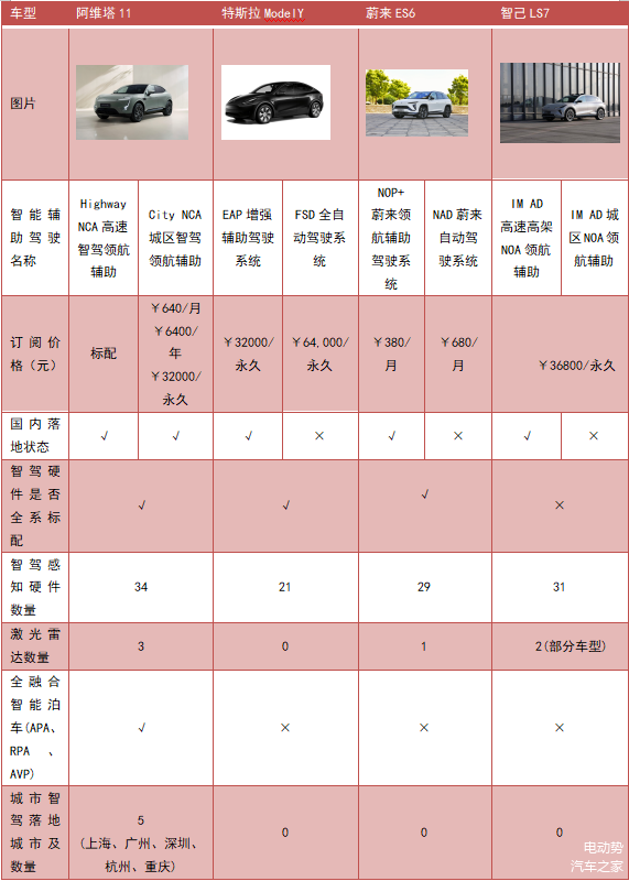 对比一些已经搭载了高阶智驾辅助包的新能源汽车品牌来说,阿维塔的性价比是比较高的。以特斯拉增强版 EAP、智己 IMD AD、极氪 ZEEKR AD 为例,想要永久订阅该功能,费用约在3.2万-3.68万元,并只有高速智驾领航系统。