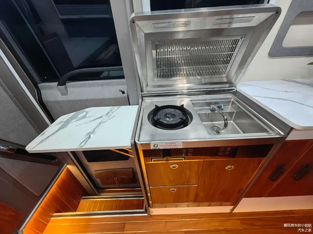 针对房车内置厨房的实际使用情况,厨房的油烟问题一直是让人头疼,为了解决这个问题,越来越多的房车车友选择了集成灶,而我们这款六驱房选择国内仅有的房车专用集成灶。房车专用集成灶与普通家用不同,房车专用经过专业的路试,尺寸能满足房车的需求,且整体式设计,安装方便,不占用过多的空间,平时不用就是一个操作台。
