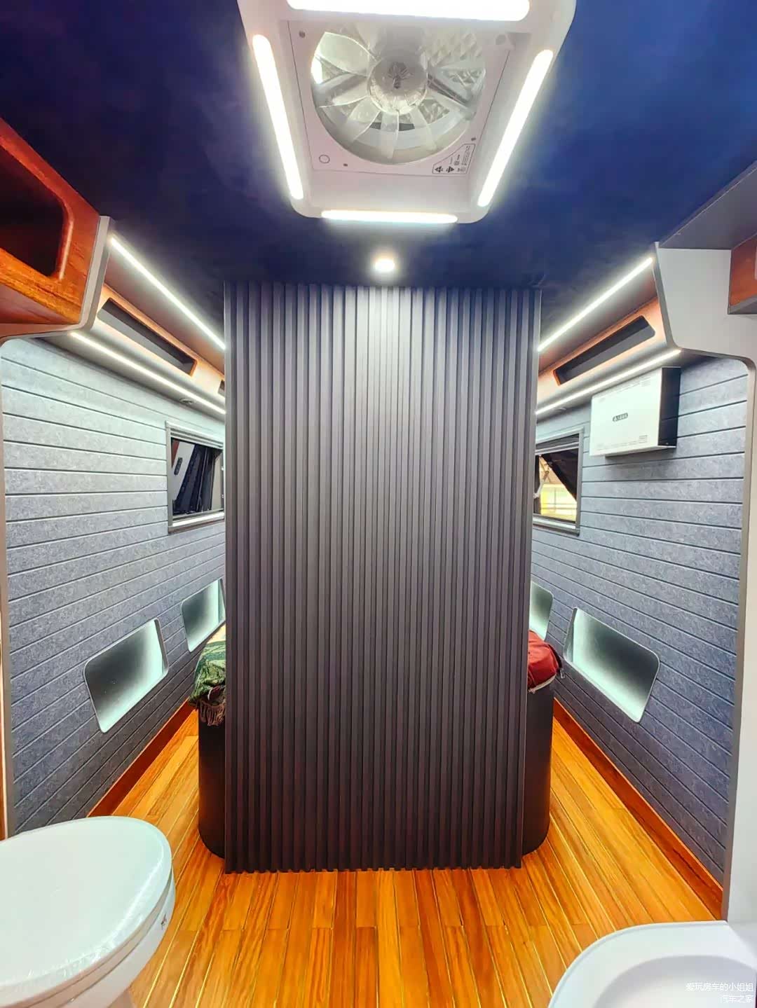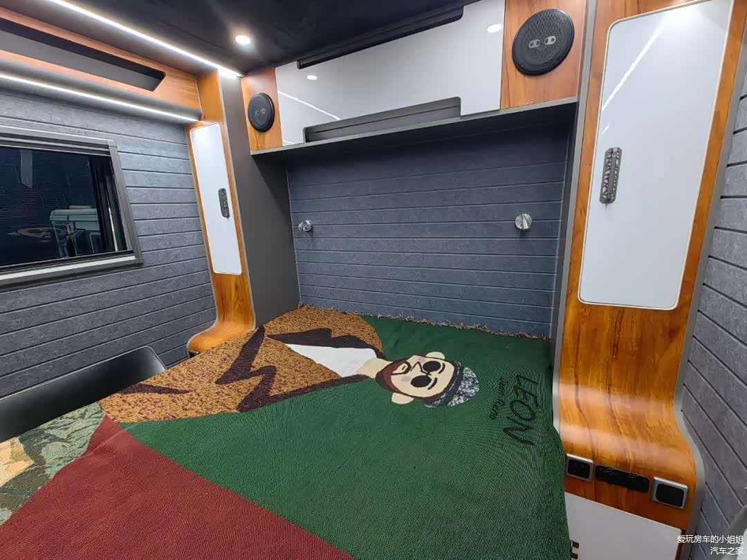 车内还配备了两侧衣柜,随时满足你的存储需求,同时还可将物品有序收纳。床头还配有12V和220V插座,提供多电源支持,方便你随时充电使用设备。