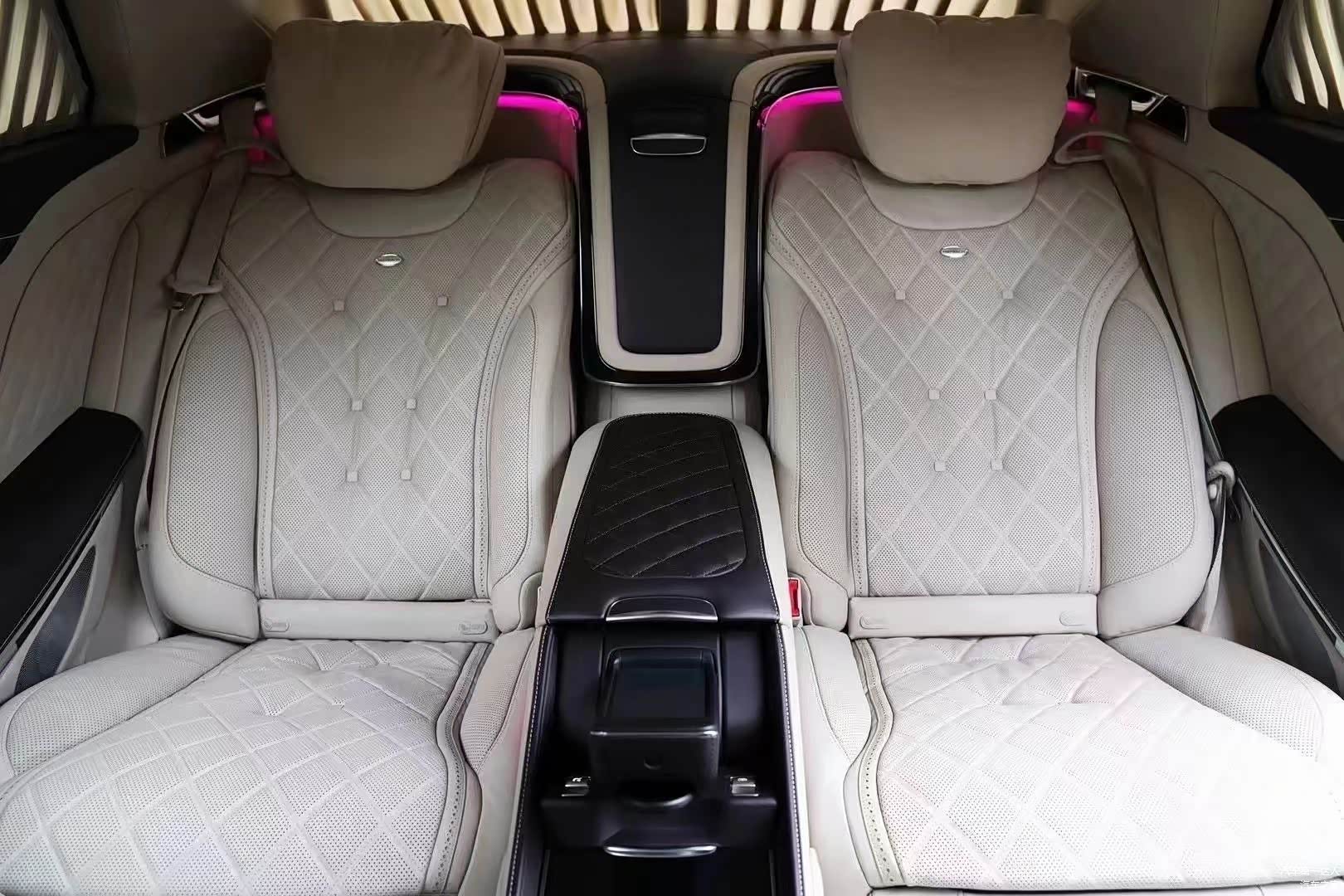 奔驰迈巴赫S680加长普尔曼作为一款顶级的D级轿车,内饰的奢华成为了判定这款车成败的一个金标准!全车内部采用了最高品质的Nappa真皮,除了中控区为常规的真皮以外包括车门的内衬以及座椅全部采用了一种菱形格栅的结构,造型之奢华让人赞叹!