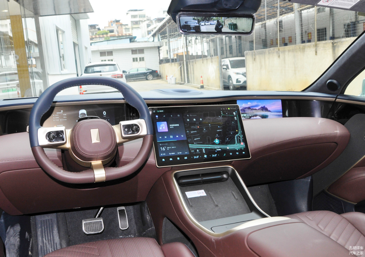 自主新势力品牌推出的新车型往往都会一步到位提供内饰全面屏,阿维塔11也不例外,台面上有三块大屏幕,不过并没有做成一体化的贯穿全面屏配置,而是让三块屏幕单独布局,这样中控悬浮大屏尺寸可以尽量大,驾驶员正前方的数字液晶仪表和副驾驶一侧娱乐屏幕就相对小一些。值得一提的是这款车内饰软包用料有老派豪华品牌的高级感,而不是类似特斯拉那种太简约的毛坯房效果。