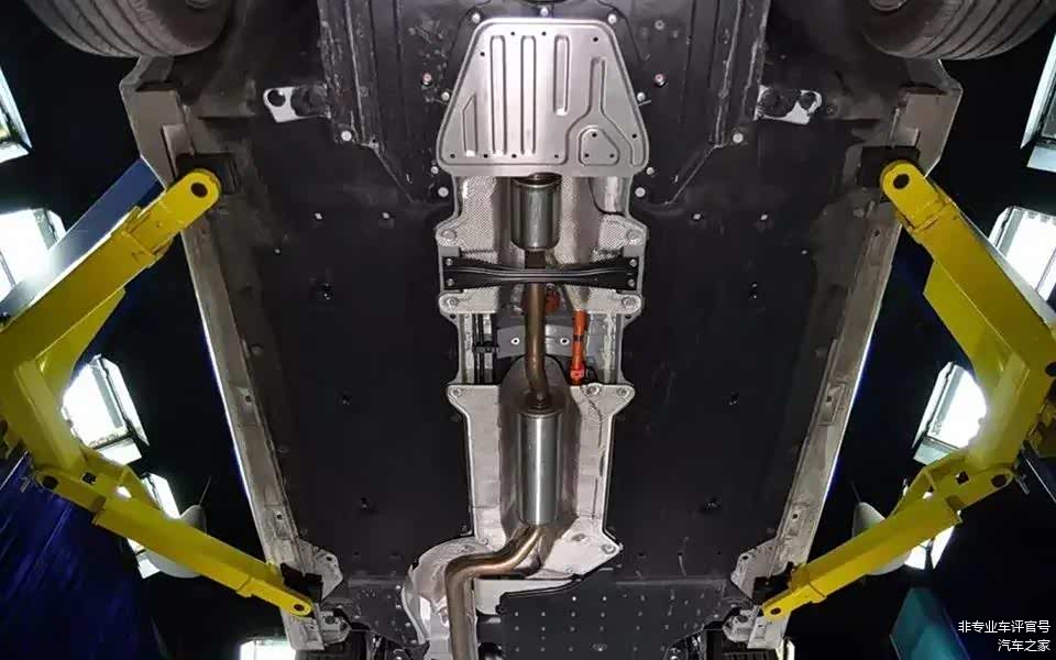 汽车底盘如果在车内实现纯平(接近),那么车外必然凹凸不平零零碎碎一堆。如上图某德系车底盘外部,几乎用各种护板、中间凹槽消除了可能在高速行驶中出现的各种无序扰流问题。因为排气管或传动系统均能被容纳到车身中间的凹槽内,所以更容易把底盘降低。底盘越低、车辆高速行驶越稳定的说法各位该都清楚,当然做不到绝对,但相对而言这种说法并没错。