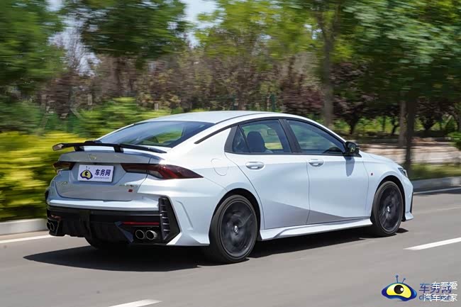 影豹R车尾的造型就更夸张了,原厂的镂空尾翼,以及巧妙集成在尾翼中央的高位刹车灯,让人有抑制不住冲上赛道的冲动。同样采取“双线条”内构的尾灯,线条由车头的直线变为曲线,并完美融入车尾轮廓,依旧出彩。大尺寸的黑色后包围,中央带有领航灯,有点性能车的意思。车尾的扩散器,结合双边共四出排气,很难不让人热血沸腾。
