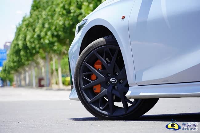 影豹R的车头采用了全新的设计,上下分体式的中网尺寸更大,两侧还带有类似于导流槽的造型,配合上犀利的灯组,让走过的路上,达到百分百回头率。似乎告诉路人“时刻准备着战斗的气息”。同时,我们可以看到中网内嵌入了橙色“R”标识,并且在车标上还有一圈“GAC PERFORMANCE”字样,代表着它是影豹家族的高性能版本车型。