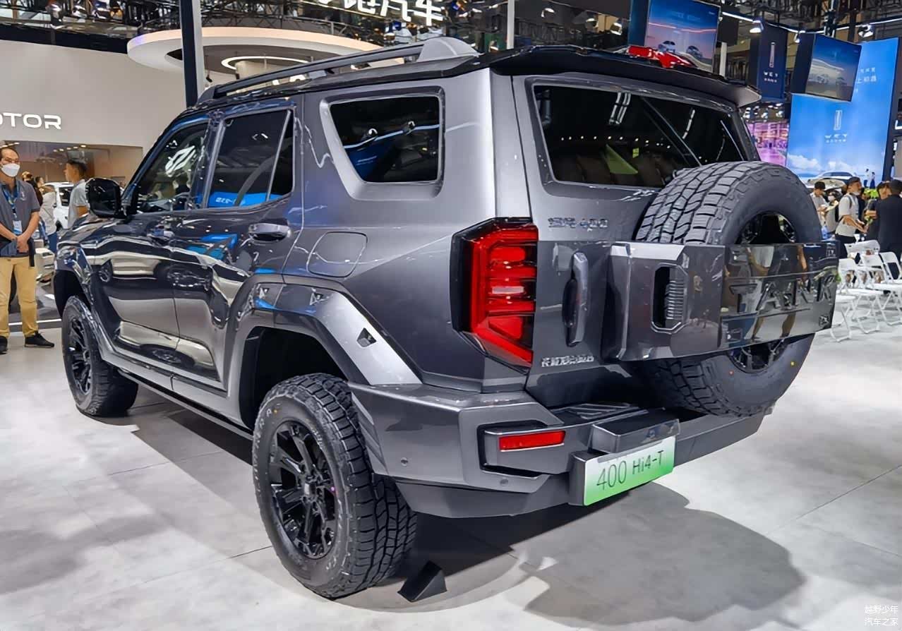 此次亮相坦克400采用水泥灰涂装,这个配色前两年比较流行,很有科幻感,比较硬核,搭配坦克400的机甲风设计,留给人很深刻的印象,比初恋还深刻,比失恋还难忘。设计上,此次亮相的车型跟此前亮相的车型没有什么变化,可以理解为该车的设计已经正式敲定了,越野包围、行李架以及外挂轮胎都很硬核,此次亮相新车使用了固铂Discoverer AT3轮胎,特点在于低噪音,适宜湿地行驶。