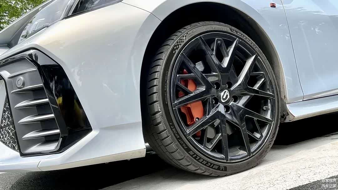 19英寸熏黑大轮毂配米其林PS5运动轮胎,四活塞刹车卡钳也到位,终于不再是中看不中用的卡钳罩了。另外,玩车的朋友应该能看出来,轮拱和轮毂之间几乎可以塞“一拳”,这或许是影豹R最大的败笔。