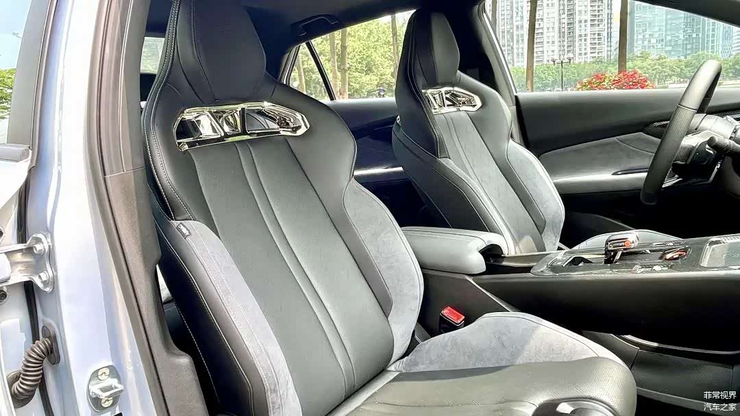 内饰方面,影豹R采用了大量翻毛皮包裹,加上灰黑的搭色,更是将运动气息提升到另一个层次。内饰的重点还有一体式赛车桶椅,只是颈部的打孔位置使用的镀铬饰条,塑料感稍强,拉低了整体的质感。