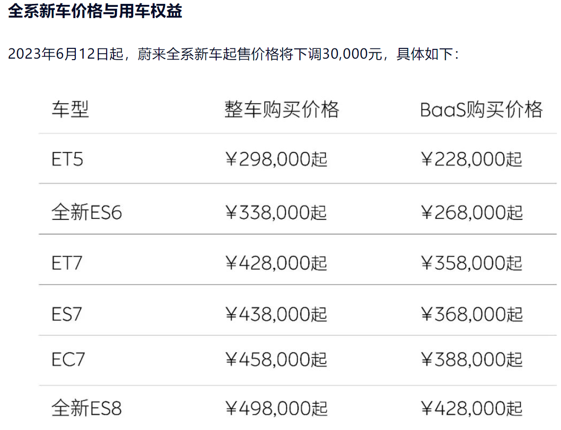 前段时间蔚来全系车型降价3万元的消息,相信大家都知道了吧?蔚来将免费换电的权益回收了,同时原来的终身免费车联网和整车10年不限里程质保,变更为6年免费车联网和整车6年或15万公里质保,三电系统10年不限里程质保。