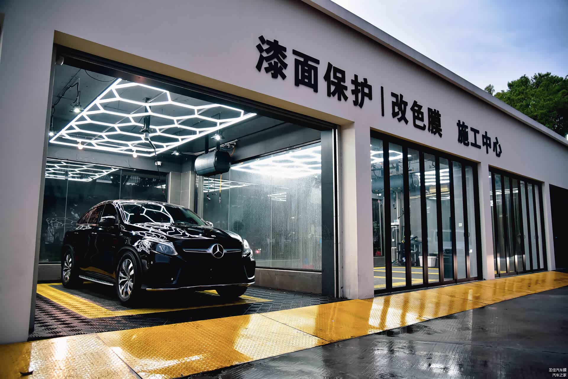 说起来施工车间,那可是保证汽车贴膜成功至关重要的一环,圣佳厦门旗舰店汽车贴膜店有专业照明系统、大型的仿雨天喷淋除尘设备和标准的车间疏水系统,能够最大限度降低空气中的县浮颗粒,减少尘点附着施工环境干净、明亮、整洁。