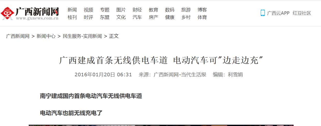 广西电网前几年与当地公交公司合作,计划打造了一条无线充电公路,使公交车在公路上行驶“边走边充”,但最终公路造价花费几十亿元人民币,成本高昂,效率又不够高,最终不了了之。