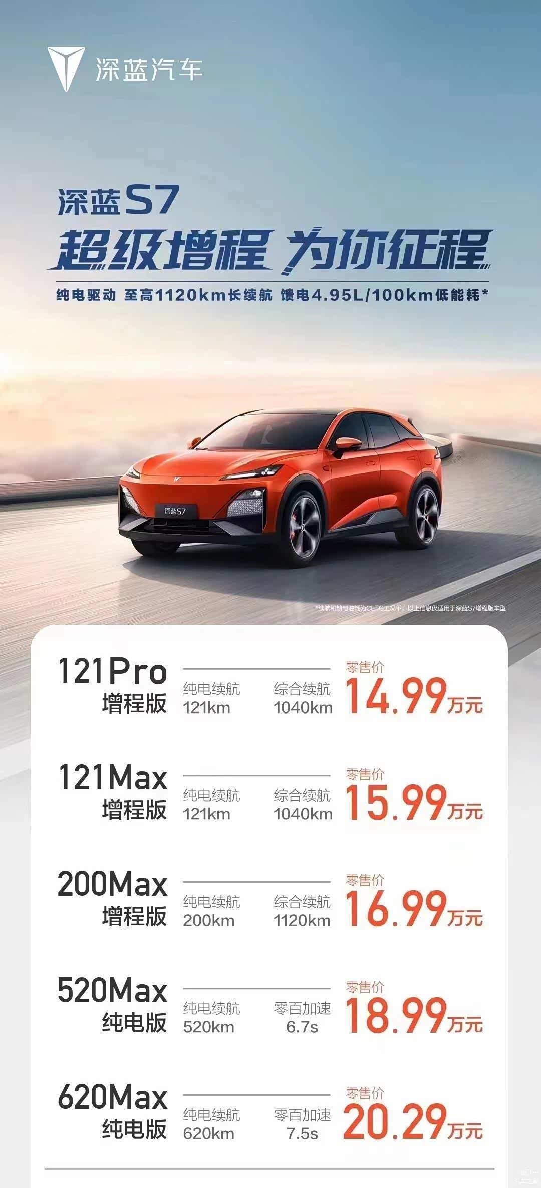 在各路造车新势力中,深蓝汽车如今的表现可谓一枝独秀,仅凭借着旗下深蓝SL03一款车型,就能交出4月份交付7756台、5月份交付7021台的优秀成绩,可见市场口碑之出色。而深蓝汽车的第二款车型 深蓝S7(图片 | 参数 | 询价),受到的关注度更高,毕竟预售价不过16.99-23.99万元,门槛已经比深蓝SL03还要亲民!