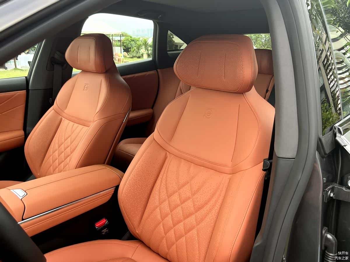 至于进一步的舒适性提升,则要靠填充物厚实的一体式座椅了,且隐藏式音响甚至直接选择和头枕融为一体,对喜欢音乐的人来说很有吸引力,同时,在14个扬声器+外置功放的配置外,还有前排双层隔音玻璃进一步提升座舱内的音乐效果。
