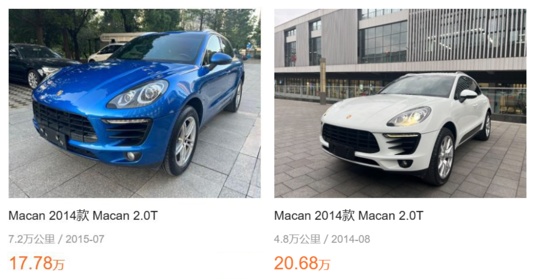 值得注意的是,在Macan的二手车中,我们还找到了一批价格20万左右,甚至20万元以内的2014款 Macan 2.0T,车龄在8-9年左右,行驶里程10万公里以内,相比正常行情要便宜个5-6万元,但仔细看过之后,原来这些二手Macan是有一些小瑕疵的,例如前后保险杠都更换过,车门、翼子板也都做过钣金等等,尽管发动机、变速箱、车身大梁没有问题,却还是影响了车价,然而这些有瑕疵的二手Macan同样有市场,甚至可以说完全不愁卖。