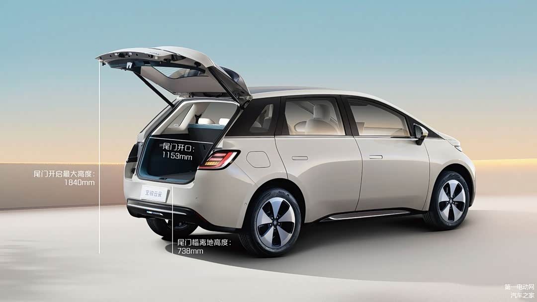 尾门横向宽度高达1153mm,纵向最大开启高度为1840mm,开合角度为70°,门槛离地高度同级最优,仅为738mm,方便用户取放超大物件。