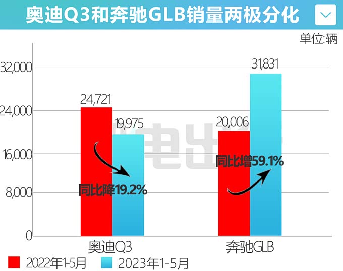 国产奥迪Q3市场表现大不如前,今年1-5月累计销量不足2万辆,同比下滑19.2%。反观老对手宝马X1和奔驰GLB,同期销量分别为34,273辆和31,831辆,均领先奥迪Q3一万辆以上。