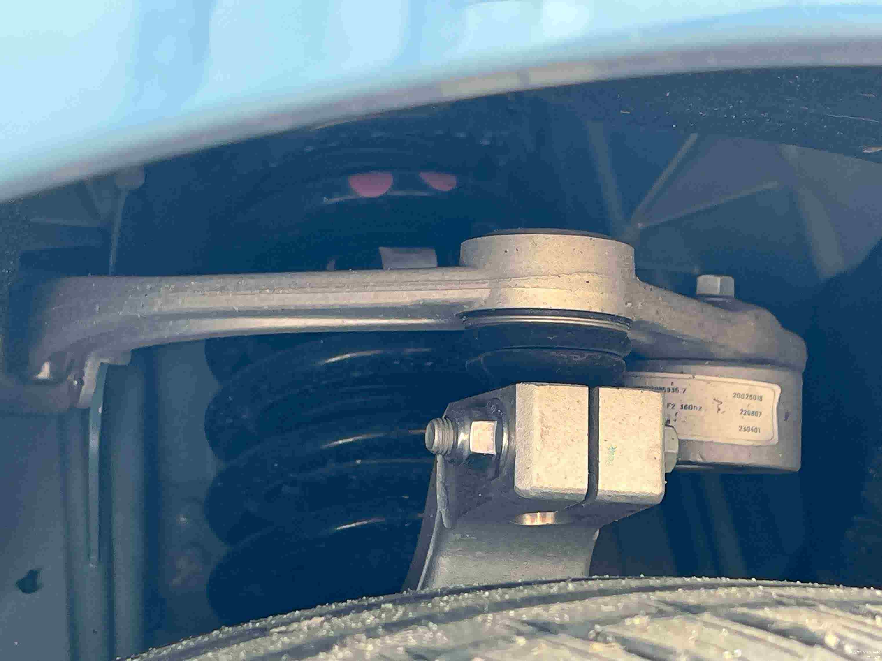 悬挂系统从ONE的前麦弗逊后E型四连杆这种廉价结构升级为高档车标配的前双叉臂后多连杆并带CDC的L系列,可以说在底盘上发生了翻天覆地的变化。比较罕见的是,前悬挂上叉臂有个小重锤。这虽然增加了悬挂系统铝合金含量,但也增加簧下质量。其实这东西叫做协震块,用来抵消一些悬挂系统中的固有频率。从这上面的贴纸可以看出来它想消除的频率。这东西可以理解为是一种NVH补丁吧。理想也不是什么运动取向的车,而且相比麦弗逊,我还是选择有NVH补丁的双叉臂。因为在悬挂几何上的先天优势比无奈多几百克簧下质量还是更好的选择。