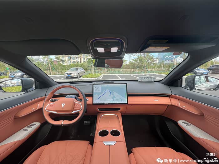 内饰方面,新车强调简洁性和档次感,环抱式设计加各种皮质包裹,营造出整个空间的轻奢氛围。这几年长发的内饰一直在做革新与尝试,深蓝S7则是跟进了目前最潮的做法,取消了传统的仪表盘,仅以AR-HUD完成信息显示。另外,新车还使用了双色两辐式方向盘、向日葵中控屏,内置高通骁龙8155处理器,搭载深蓝SL03相同的深蓝智能座舱系统。