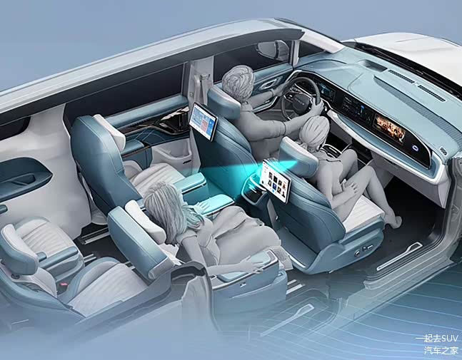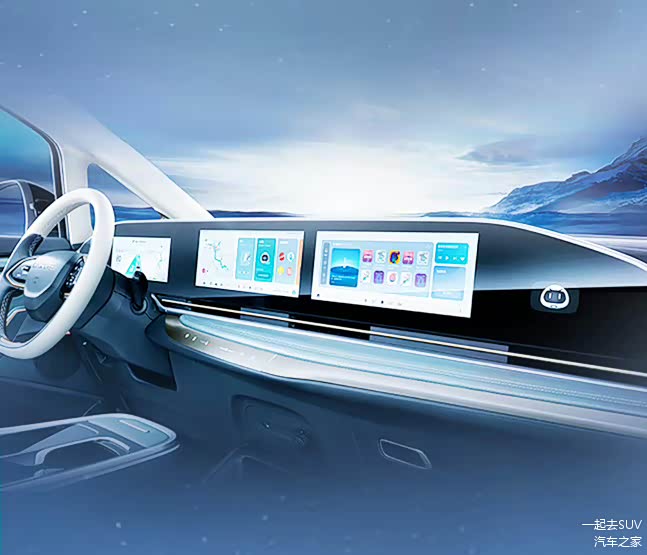 进到车内,MIFA9采用了贯穿式屏幕设计,分别含有10.25英寸液晶仪表、12.3英寸中控屏幕、12.3+3英寸副驾娱乐屏。同时辅以独特、饱满的仪表台造型设计以及内饰配色,让整个车厢颇显未来感。不过,几个屏幕之间并没有实现“无缝连接”,点亮后还是能看到明显的黑色粗边,看上去会略微显得不够高级。