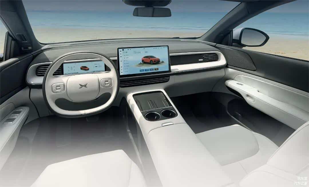 内饰部分,小鹏G6同样是简洁化的设计,配备10.2英寸液晶仪表盘、14.96英寸中控屏和双辐式方向盘,有趣的是空调出风口并没有采用新能源汽车中比较主流的隐藏式出风口,而是采用了传统的分段式风口,在车机部分,新车并没有使用高通骁龙8155,而搭载高通骁龙6125芯片,不支持5G网络,但配备的是Xmart OS 4.0智控系统,拥有最新的语音交互能力,同时也支持四区语音功能。