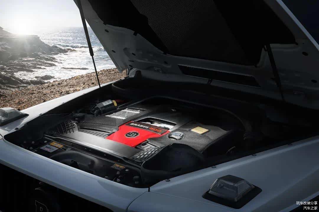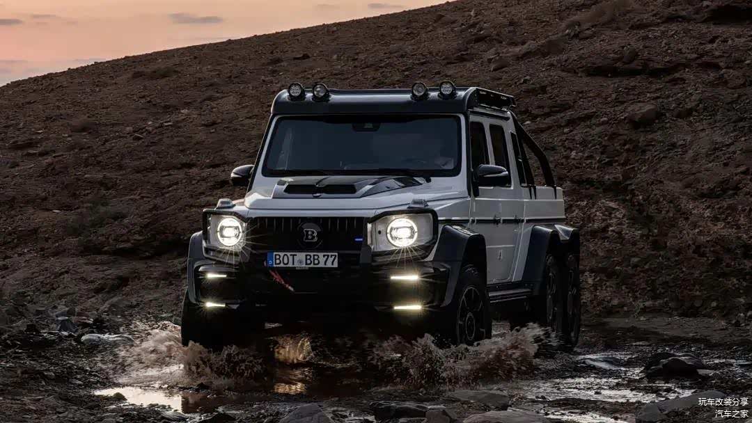 到底怎么个强法?从车名可以看到点信息,巴博斯的命名一般都是马力数据,所以800即是代表这车拥有800匹马力,而6x6当然是指6轮驱动了。这车动力系统是4.0T V8双涡轮增压发动机,经过巴博斯改装后爆发800匹的马力和1000牛·米的扭矩,百公里加速只需5.8秒。