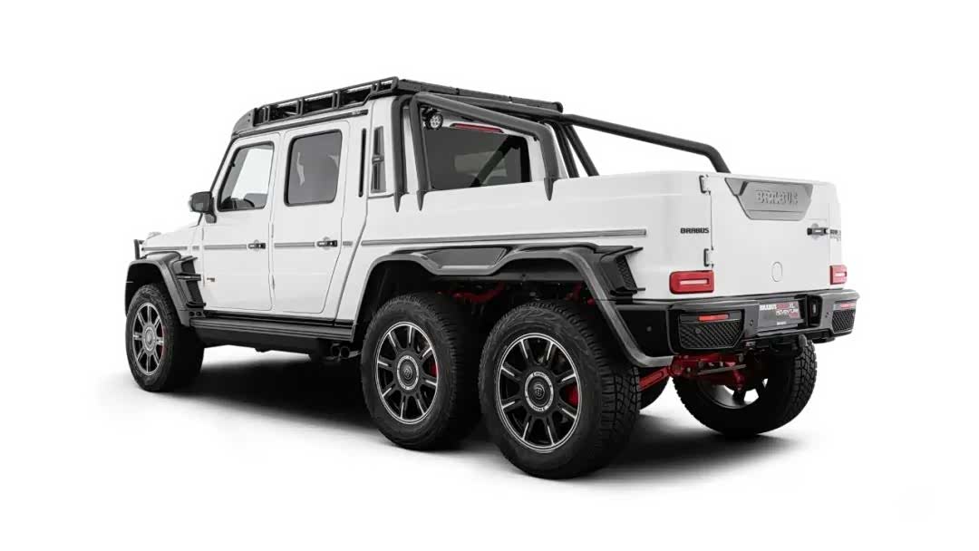 巴博斯对于G63开发的硬核改装部件悉数用上,包括带散热孔的碳纤维引擎盖,金属前护杠,车顶拓展平台,而且加装了行李架。