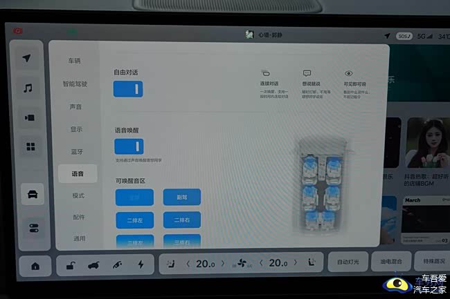 车机系统的整体UI设计和操作流畅度,可以算得上中上游水准了,并且语音交互系统能实现“可见即可说”和六音区自由对话,大幅提升了操作便利性。不愧是互联网出身的理想汽车,懂得当下年轻人使用需求与喜好。