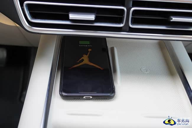 另外,空调出风口下方还配备了两个无线充电面板,这两个充电面板都可以给手机充电,并且带有防滑设计,整体给前排驾乘人员充足的补能状态以及储物空间。
