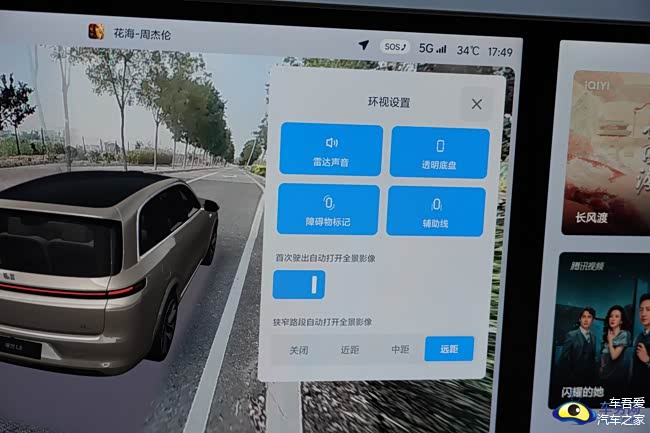 理想L8还配备了360度环视功能,在狭窄路段能够自动打开全景影像功能,并有3D效果、雷达声音、障碍物标记、辅助线、同名底盘等。