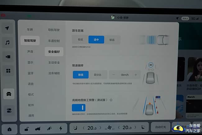 本次试驾的Max版本来说非常强悍,在驾驶辅助功能层面并不差,依然支持全速自适应巡航、车道保持辅助、辅助并线、自动紧急制动、前车起步提醒、主动变道、变道提醒等功能,整体的感知系统和算力值得肯定。