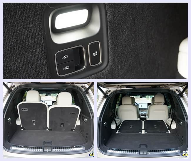 后备厢方面,在座椅全部打开的状态下,理想L8后备厢也有着出色表现,容纳两个登机箱不成问题。按下左侧一键座椅放倒按键后,即便第二排座椅非常靠后,每张座椅也会自行调节,直至第三排座椅完全放倒。放倒后,此时的后备厢空间巨大,日常使用绰绰有余。