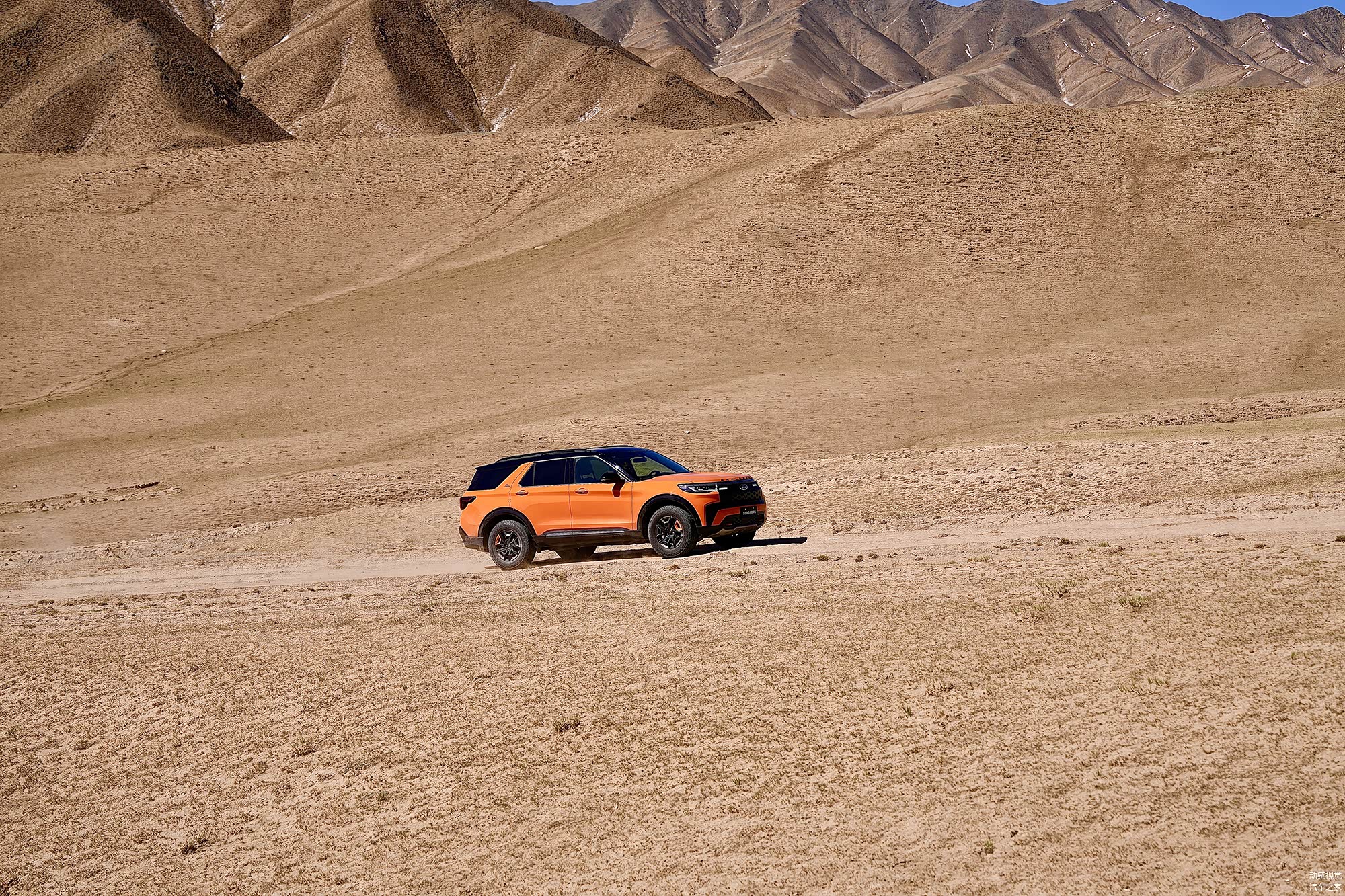 福特探险者昆仑巅峰版是同级别唯一采用纵置后驱动力布局的车型,相较于前驱车型,这样的动力布局在低附着力路面具有更强的牵引力表现。同时,在路况复杂的沙漠地区,福特探险者昆仑巅峰版搭载的托森限滑差速器给予了我们充分的驾驶信心,即使是在砂石路面出现单侧打滑的情况,扭矩可以迅速的分配至有附着力的车轮,从而实现脱困。除此之外,福特探险者昆仑巅峰版的离地间隙较全新福特探险者也提高了30毫米,通过性大大提高,所配备的高扁平比全地形轮胎有独特胎肩和胎面花纹,具有很强的湿地排水性和湿滑路面抓地能力,一同构筑了“可上昆仑”的勇气。