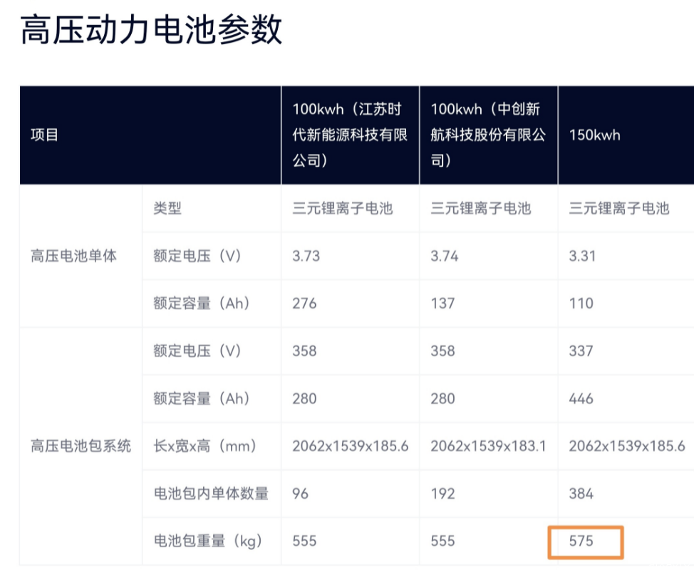 更令人惊喜的是,这款电池包的重量仅为575kg,比100kWh电池包只重了20kg,算是绝对的“加量不加价”。