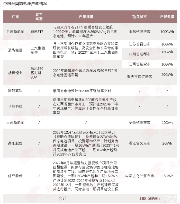 相比遥远的固态电池,半固态电池似乎也有这样的优势。除了蔚来一马当先,规划了100GWh的产能外,其余像清陶能源、赣锋锂业、国轩高科这些厂家,也将于近期量产相关的技术。