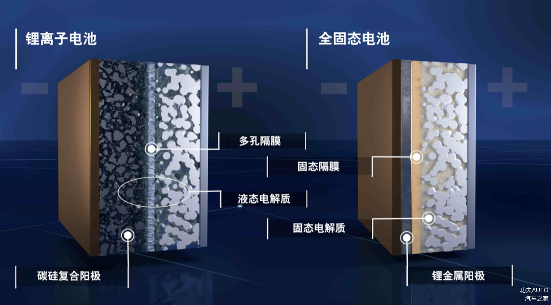 而固态电池则不同,它将电解质变成了固态,这种新型结构可以让更多锂离子聚集到电池的一端,通过传到更大的电流储存更多的电池能量。而且由于没有电解液,这种电池的封存也非常容易,甚至不需要再额外增加冷却管、电子控件这些,还能进一步降成本、减重。