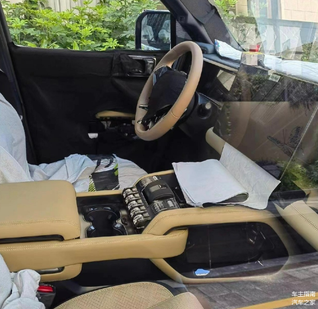 内饰方面,方程豹豹 5车内搭载了一块大尺寸中控屏幕,中控屏采用了悬浮式设计,另外配有一块内嵌式液晶仪表盘。中控台由大面积软质材料进行覆盖,并加入了类似陶瓷的亮面饰板进行装饰,其中副驾驶前方还设计了一个扶手,有硬派越野车那味了。