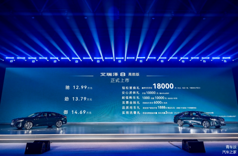 定位“高性能品质家轿”的艾瑞泽8高能版,瞄准“A+级性能家轿之王”,新车共推出驰、劲、御3款车型,官方指导价12.99万元-14.69万元。