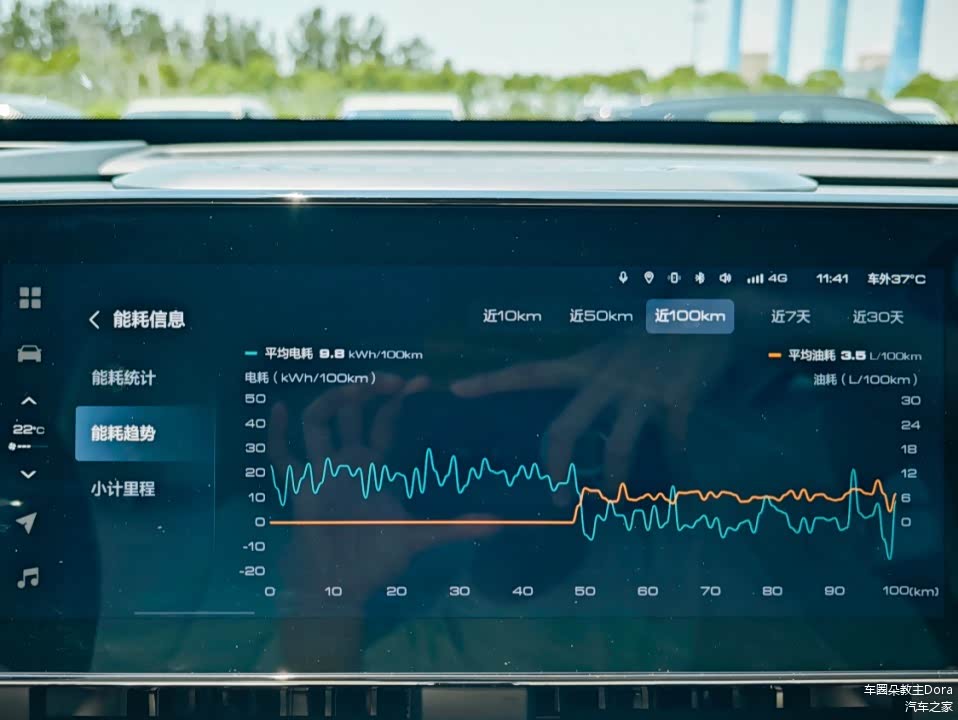 首先,让我们来讨论上午的去程(共111.9公里)。全程纯电优先,关闭强制保电。前50公里完全依靠电池驱动,电耗约21kw/100km,