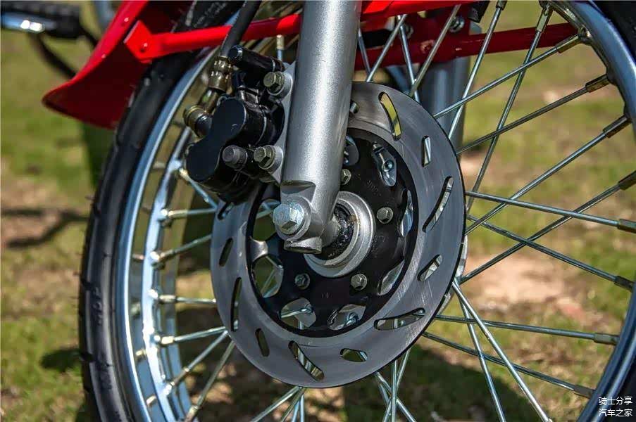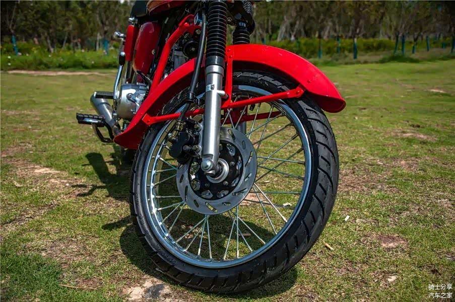 制动系统则是采用了最为朴实且实用的前碟刹+后鼓刹的模式,虽然没有前后鼓刹的经典,但出于安全考虑,碟刹显然会令更多年轻骑士所接受。