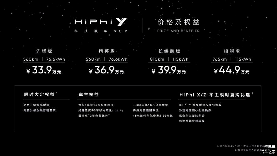 近日, 高合HiPhi Y(图片 | 参数 | 询价)上市,售价区间为33.9万元-44.9万元。共有四款车型,定位为科技豪华中大型尺寸SUV。值得注意的是,这个价格与月初的预售价36.9万元起相比便宜了3万元,令人惊讶。