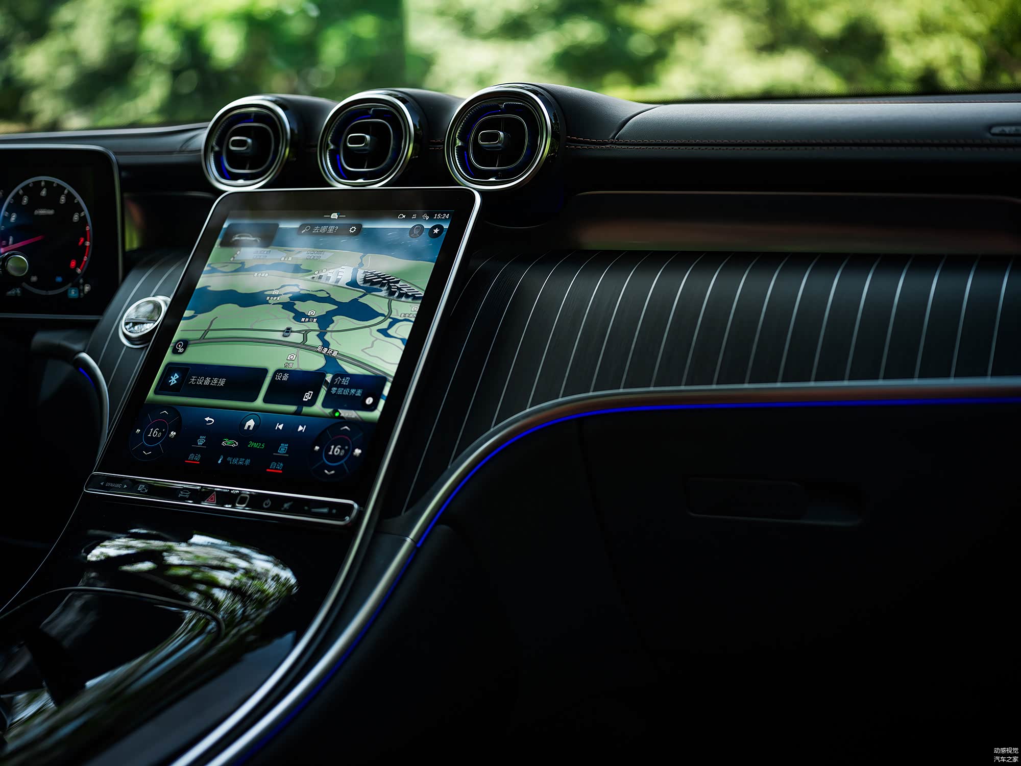 全新长轴距GLC SUV车内目之所及的精致内饰也是对生活美好的解读,“星弦”黑色开孔木嵌铝质饰条采用创新的实木与铝箔嵌合工艺,在仅有0.5毫米的木饰板上,以激光切割出条纹沟槽,用铝箔贴片与之精密嵌合,选材与工艺的完美结合创造出非凡的豪华质感。方圆形的“星环”出风口内嵌氛围灯,营造出别具一格的车内氛围,大面积的细腻皮革包裹与丰富的金属材质按键,细微间诠释着豪华格调。