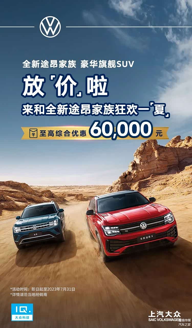 蜀锦畅言:通过不同的动力系统、不同的座椅布局组合,途昂家族对中大型SUV市场的主流需求实现了精准覆盖。不论你追求均衡、还是追求性价比、亦或者是追求极致性能,途昂家族总有一款车型能够符合你的需求,显然出色的产品实力已经成为了途昂家族俘获用户的核心。那么在全系车型至高综合优惠6万元、至高2年0利率、途昂X提供终身免费基础保养服务包政策的助推之下,现在已经成为了入手途昂家族的最佳时机。