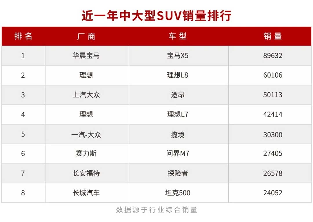 在中大型SUV领域,上汽大众途昂家族一直都算得上是同级中一个无法绕开的产品序列,毕竟从空间、配置、动力、品质、价格等综合表现来看,途昂家族可谓面面俱到,而这样均衡的表现自然会被消费者看见。从近一年的销量来看,途昂位列中大型SUV销量榜第3名,仅次于宝马X5、理想L8。