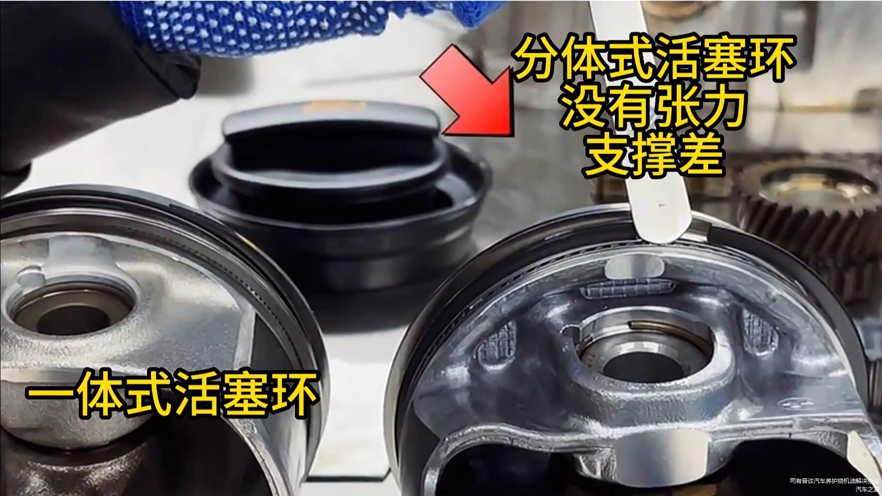 第一点,一体环是框架式结构耐压力很强,对于发动机的性能有很大的帮助,而且不容易断裂和磨损,柴油车的油环都是一体环,柴油车一体环承载要18-20BAR以上的压力,柴油车从来不使用分体环,分体环满足不了这样高的缸压要求。柴油压燃后的温度,比汽油车火花塞点燃后燃烧温度低很多,好比是饭店的后厨,掌勺的炤台必须加压,加压后点燃的煤气才会有更高的温度和更猛烈的火焰热能,这和直喷汽油发动机的道理是一样的,柴油车是压燃,没有点燃的那种高温,即便在高压下,柴油的缸内温度也比较低。所以柴油车即便使用的是一体环,出现烧机油出现的时间也很晚。这也验证了,烧机油和高温有直接关系的理论。