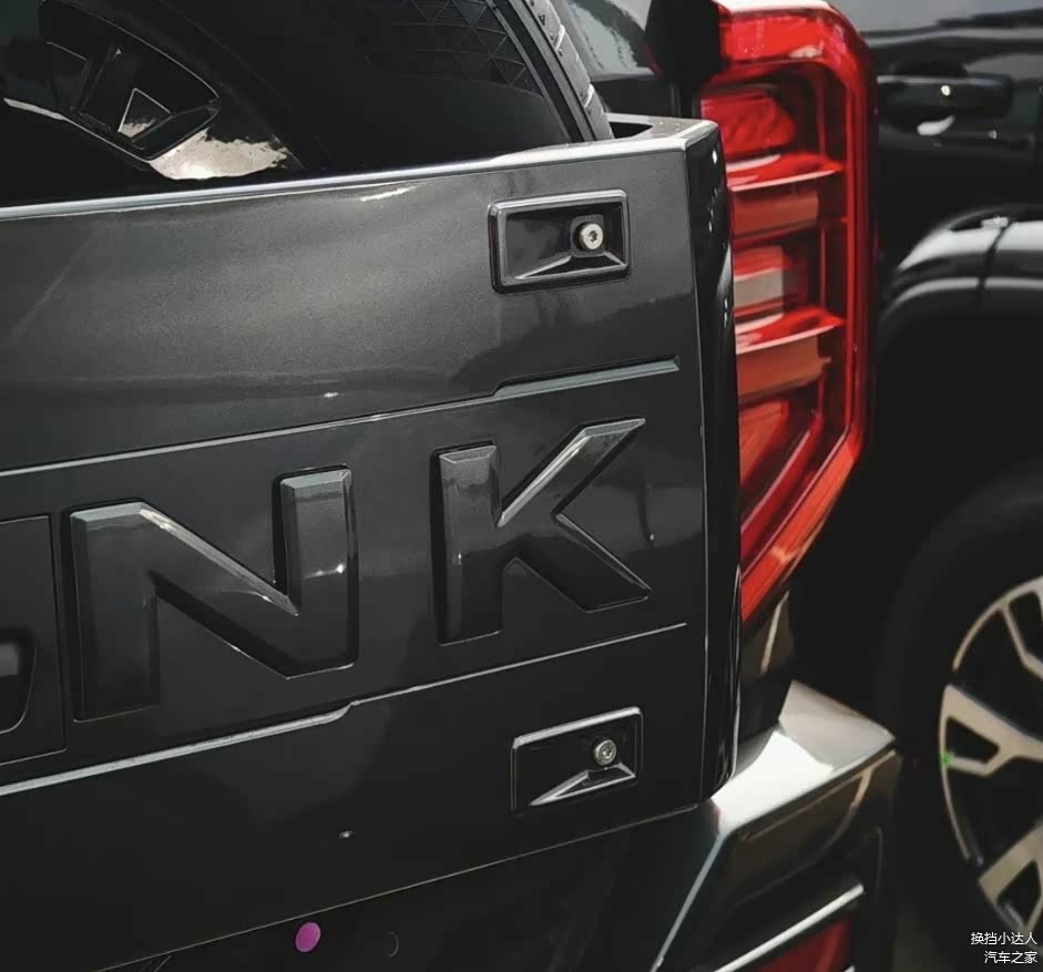 新车的侧面车身造型扎实,C柱进行了倾斜的处理,突出的腰线勾勒的细腻平直,和下裙位置的筋线相呼应,前后轮眉处的饰板设计的颇具力量感,并且还点缀了类似于“铆钉”的装饰,多幅式多幅式的造型大方。车尾设计的有种“越野风”,扰流板较为宽大,并且还配备了高位刹车灯,尾灯组是竖状的样式,点亮之后的视觉效果不错,外挂式的备胎是有配备的,并且还装饰了“TANK”的字母标识,尾门采用的是侧向开启的方式,反光灯带较为修长,后包围同样处理的比较厚实。