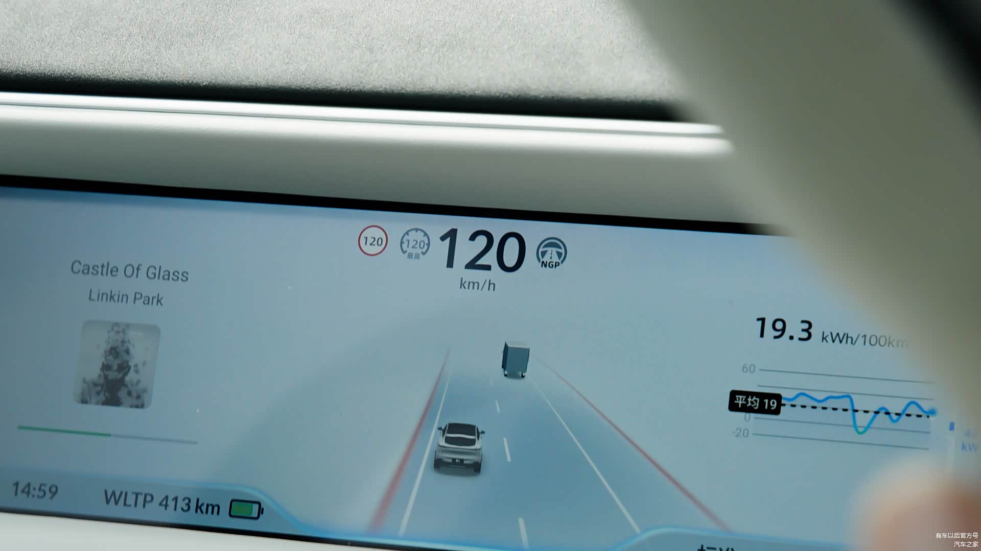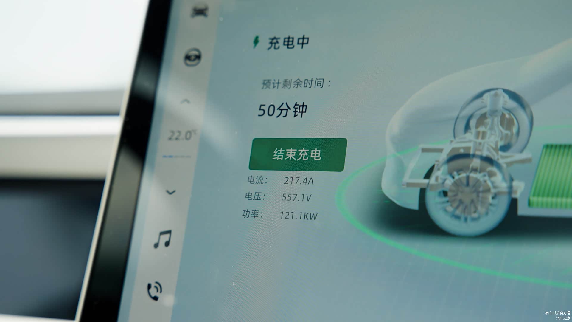 这个成绩是以几乎全程120-130公里每小时的时速巡航下得到的。车内全程两名乘员,后备箱装有部分摄影器材和行李,车内的空调、音响、手机无线充电、座椅通风等功能一点也没省着用,这样的能耗表现很令人信服。