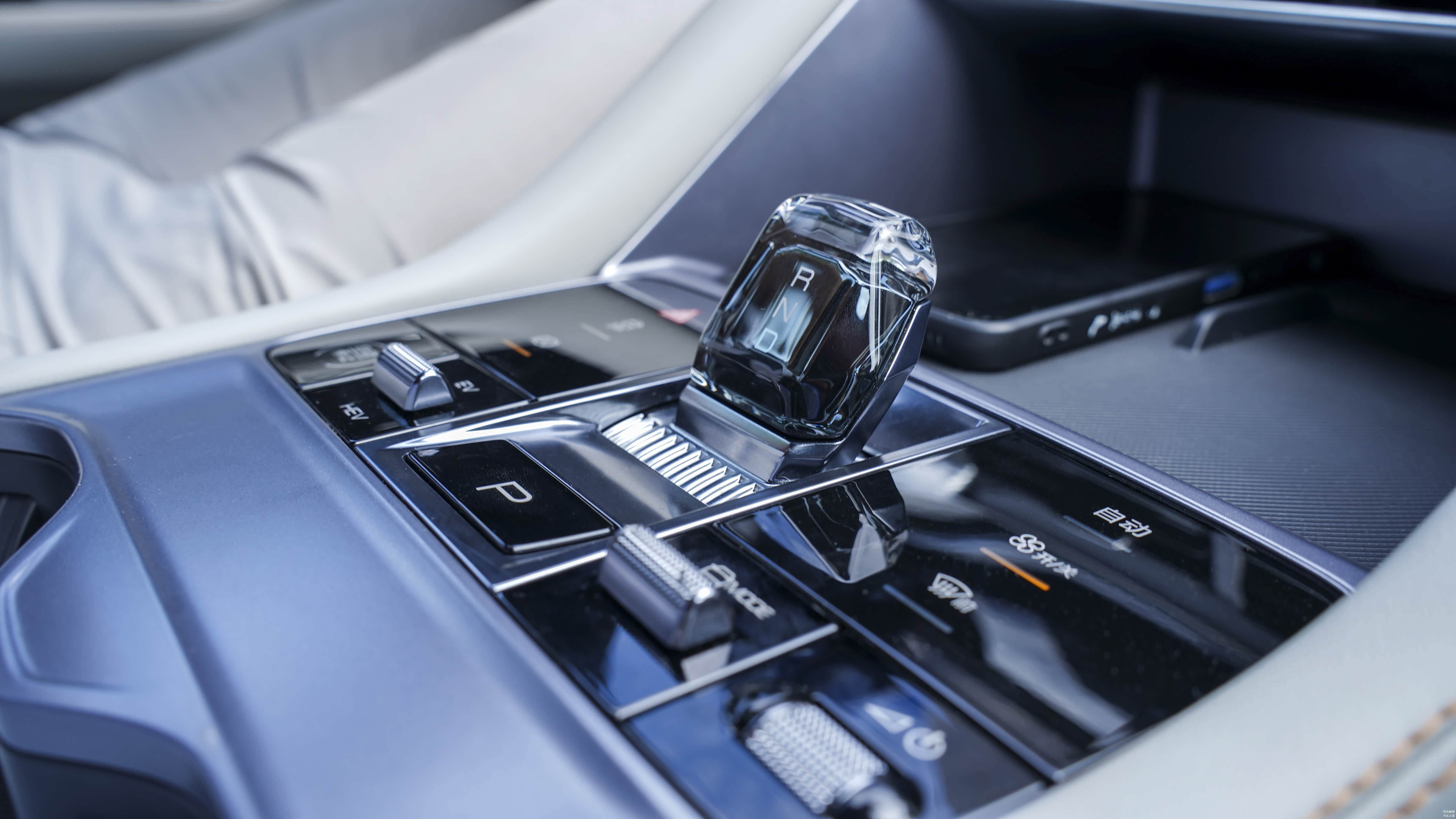 整个内饰最大的变化在换挡机构,全新设计的“海洋之心”水晶电子档杆更显精致时尚,前方有两个手机置物格,在面板上集成了模式切换、空调设置、一键启动等功能,而且采用触控式设计,科技属性进一步提升。