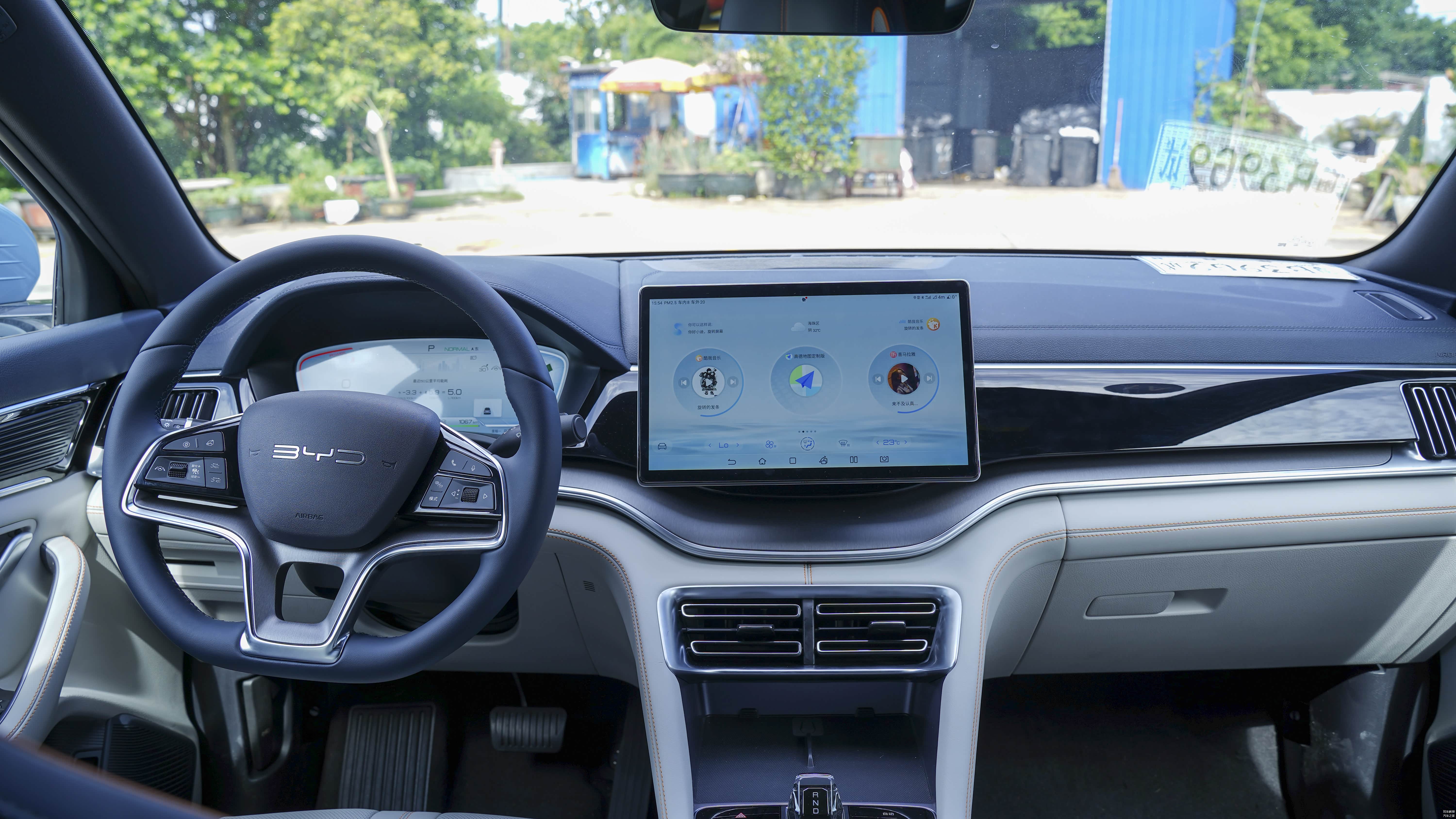 出发前将空调温度设置为23°2档风量,检查轮胎胎压有无异常,将小计里程清零,设置导航后,正式开启本次宋 PLUS DM-i 冠军版馈电油耗测试。